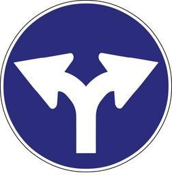 | Keywords: Bild 26b - Vorgeschriebene Fahrtrichtung - Rechts oder links, StVO 1956.svg de Bild 26b Vorgeschriebene Fahrtrichtung “ Rechts oder links Für den Blauton wurde das RAL-Farbtonregister 840 R gewählt Der dort verzeichnete Ton ist in der Abbildung wiedergegeben Verkehrszeichen nach den Vorgaben der StVO in der Fassung vom 29 März 1956 Quelle Bundesgesetzblatt Jahrgang 1956 Nr 19 S 359 Tag der Ausgabe Bonn 29 Mai 1956 own Mediatus 2013-09-03 v Cc-zero PD-VzKat Diagrams of regulatory road signs of Germany 1956 set 26b Turn left or right road signs |