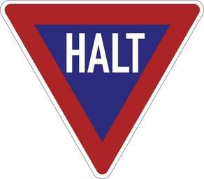 | Keywords: Bild 30a - Halt! Vorfahrt achten! StVO 1956.svg de Bild 30a - Halt Vorfahrt achten Das bis 1971 produzierte westdeutsche Verkehrszeichen žHALT in der Fassung der StVO vom 29 März 1956 mit drei abgerundeten Ecken; hergestellt bis 1971 fr L'ancien panneau stop 1956 “1971 own Mediatus 23 Juli 2012 Herstellungsdatum + Signs User Mediatus/no-new-version Cc-zero PD-VzKat German language signs 30a svg Location not applicable Diagrams of regulatory road signs of Germany 1956 set 30a svg SVG road signs in Germany 30a svg Diagrams of stop signs Germany Stop signs with HALT Triangular stop signs Bild 30a Navy red white road signs |