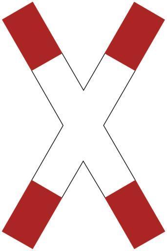 | Keywords: Bild 4 e - Warnkreuz für unbeschrankten eingleisigen Bahnübergang, StVO 1953 und 1956.svg de Bild 4 e Warnkreuz für unbeschrankten eingleisigen Bahnübergang Als Rot wurde das RAL-Farbtonregister 840 R gewählt Verkehrszeichen nach den Vorgaben der StVO in der Fassung vom 24 August 1953 Quelle Bundesgesetzblatt Jahrgang 1953 Nr 56 S 1222 Tag der Ausgabe Bonn 3 September 1953 Identisch in Bundesgesetzblatt Jahrgang 1956 Nr 19 S 352 Tag der Ausgabe Bonn 29 Mai 1956 own gezeichnet durch Mediatus Mediatus 2013-08-28 v Cc-zero PD-VzKat Diagrams of danger warning road signs of Germany 1953 set 04e Diagrams of danger warning road signs of Germany 1956 set 04e Diagrams of railway road signs of Germany 1961 set Zeichen 201 SVG road signs in Germany |