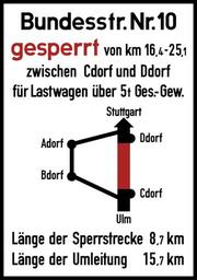 | Keywords: Bild 57 - Tafel für Umleitung des Verkehrs auf Bundesfernstraßen, StVO 1953.svg de Bild 57 Tafel für Umleitung des Verkehrs auf Bundesfernstraßen Verkehrszeichen nach den Vorgaben der StVO in der Fassung vom 24 August 1953 Quelle Bundesgesetzblatt Jahrgang 1953 Nr 56 S 1237 Tag der Ausgabe Bonn 3 September 1953 Bundesgesetzblatt Jahrgang 1953 Nr 56 S 1237 Interpretation sowie gezeichnet durch Mediatus Mediatus 2013-08-29 other fields + Signs User Mediatus/no-new-version Cc-zero PD-Vz historisch Diagrams of information road signs of Germany 1953 set 57 Ulm SVG road signs in Germany German language signs |