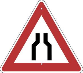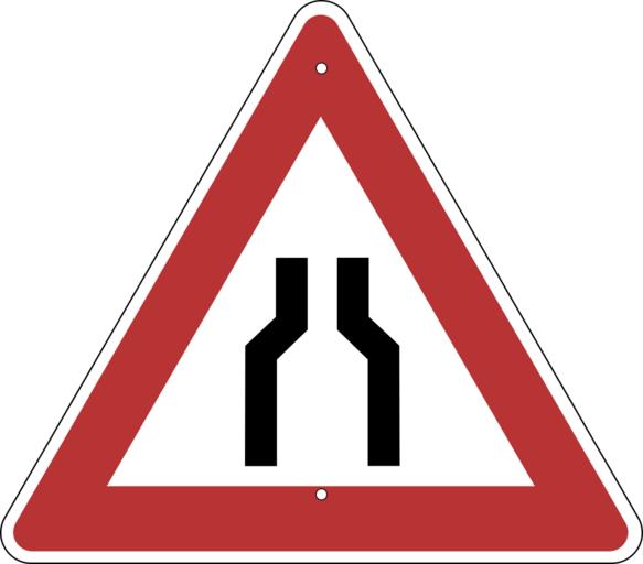 | Keywords: Bild 7 - Verengung der Fahrbahn, StVO DDR 1964.svg de Bild 7 Verengung der Fahrbahn StVO DDR 1964 Verkehrszeichen der Deutschen Demokratischen Republik nach der Straßenverkehrsordnung StVO von 1964 Größe nach TGL 10629 Tabelle 2 700 bzw 1100 mm Kantenlänge <br /> Die Ausführung dieses Schildes richtet sich nach den im April 1967 bekanntgegebenen Normen TGL 10629 Blatt 2 Leiteinrichtungen für den Straßenverkehr “ Verkehrszeichen “ Schilder und TGL 10629 Blatt 3 Leiteinrichtungen für den Straßenverkehr “ Verkehrszeichen “ Symbole Farbe Schrift Die Farbgrenzen werden deffiniert nach der im Februar 1967 bekanntgegebenen Norm TGL 20684 Blatt 6 Signallichter “ Farben und Farbgrenzen im Verkehrs “ Ortsfeste Signallichter im Straßenverkehr Alle zwei genannten Normen wurden am 01 01 1968 verbindlich TGL 20684 Blatt 6 war ein Ersatz für die ältere Norm TGL 06163 vom November 1962 die bei Einführung der StVO von 1964 galt Damals hatte es noch keine durch die CIE-Normfarbtafel festgelegten Farbgrenzen gegeben Die normierten Bohrlöcher im Schild nach TGL 10629 Tabelle 2 sind behördlich vorgeschrieben und daher unverzichtbarer Bestandteil bei diesen Verkehrszeichen und werden somit in der Abbildung wiedergegeben Anwendung fand bei der Einführung dieser StVO noch die Typfarbkarte 5/62 und ab dem 01 10 1969 die verbindlich eingeführte Farbkarte nach TGL 21196 TGL 21196 vom Januar 1969 Anstrichstoffe “ Farbregister Typfarbkarte 5/62 Rot 3000 RAL-Farbtonregister 840 R 3000 TGL 21196 1969 0605 žSignalrot Lab L 44 78 a 50 80 b 26 62 Zur CIELab-Umwandlung siehe TGL 21196 Juni 1987 Anstrichstoffe “ Farbregister “ Vorzugsfarben own Mediatus 25 Februar 2016 Herstellungsdatum + Signs User Mediatus/no-new-version Cc-zero SVG road signs in East Germany 07 svg Diagrams of danger warning road signs of East Germany 1964 set 07 svg Triangular warning road signs of East Germany 07 svg |