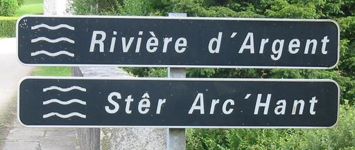 | Keywords: Bilingual river sign Huelgoat.jpg Bilingual sign of river Huelgoat Brittany Stêr Arc'hant Rivière d'Argent Own 2007-08-17 Man vyi Huelgoat Bilingual Breton-French road signs Multilingual place name signs in France River name signs in Finistère Rivière d'Argent |