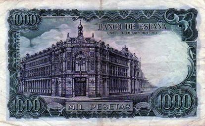 | Keywords: Billet 1000 Pesetas Verso Echegaray.jpg Billet de 1 000 Pesetas 1971 Dimensions 153 x 94 mm Espagne Verso La Banque d'Espagne est la banque centrale du royaume d'Espagne Εuvre personnelle own work 2015-04-19 Date et temps de crΓ©ation des donnΓ©es voir la section MΓ©tadonnΓ©es plus bas ImportΓ© sur Commons Γ 17 01 19 April 2015 UTC UTC Date and time of data generation see the section Metadata below Uploaded on Commons at 17 01 19 April 2015 UTC UTC Jean Michel Etchecolonea GFDL cc-by-sa-3 0 Peseta banknotes Banknotes with a face value of 1000 PD-SpanishGov-money |