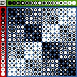 | Keywords: Binary Operations - XOR operator.svg Binary ring diagram to illustrate operators on binary numbers The least significant bit LSB is the innermost ring Black signifies 0 white signifies 1 X is the number along the top Y is the number on the left Q is the result Bitwise XOR operator <math>Q A \mbox XOR B</math> own 2009-09-20 Inductiveload Own work all rights released Public domain Binary ring diagrams XOR gates | ||||