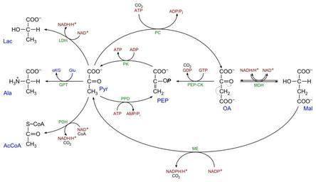 | Keywords: BiologicalPathways-KetoAcids.svg Biochemische Reaktionswege für die Carboxylierung Decarboxylierung und Transaminierung von Ketosäuren Biochemical pathways for the carboxylation decarboxylation and transamination of keto acids Own 2010-02-15 Sponk <span class signature-talk >talk</span> AlphabetaKS3 png Wikipedia de File Reaction mechanisms Biosyntheses Metabolic pathways | ||||