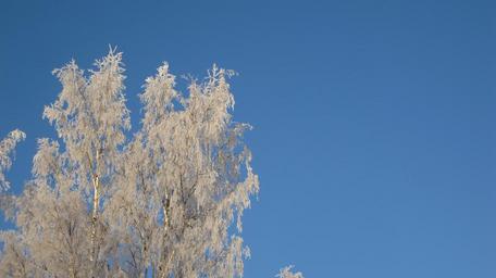 Keywords: birch trees winter frost branches cold snowy finnish sky frost on the trees frosty branches