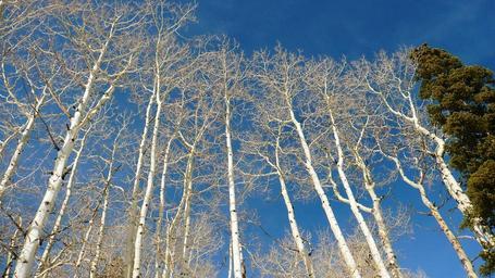 Keywords: birch trees woods perennials white woody bark stems branches wooden plants tall flora vegetation blue sky sky background nature outdoors environment wild growth growing hardwood scenic scenery