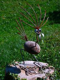 Keywords: bird art craft decoration cheerful funny stone metal metal wire wire tree trunk red green brown eyes