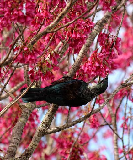 Keywords: bird blossoms tui flower spring pink seasonal branch natural tree flora white outdoor