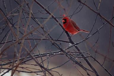 Keywords: bird cardinal winter ice wildlife nature red branch perched