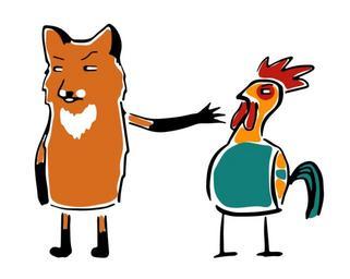 Keywords: bird cock vector chicken cute illustration funny humor thief wild animal fox art image character comically expression sinister suspicion danger pictured