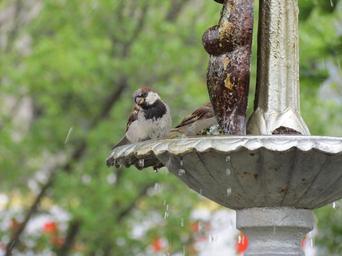 Keywords: bird fountain water outdoor bath playing refreshing drop nature splash wet garden