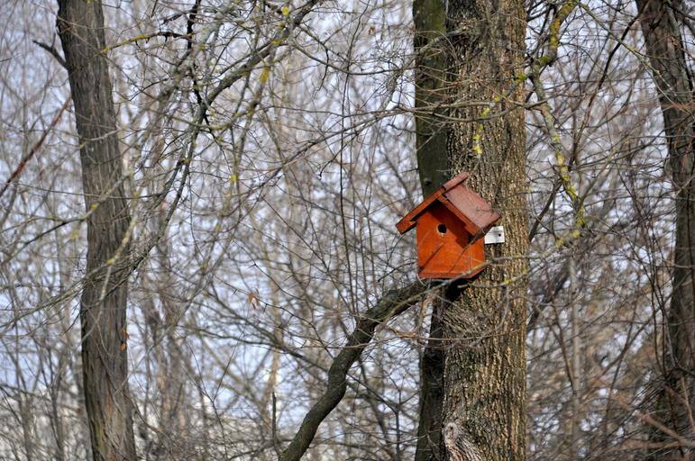 Keywords: bird house tree branches winter nature park forest birdhouse