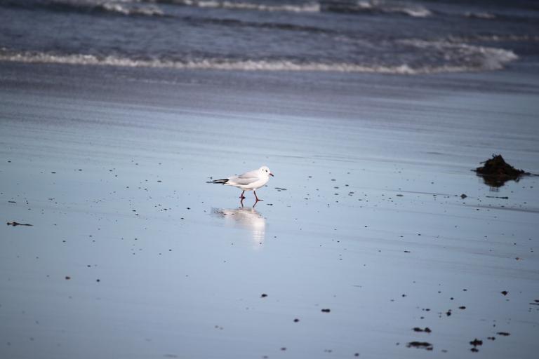 Keywords: bird mirrored seagull lonely same beach