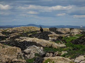 Keywords: bird mountains field sea sea weed landscape rocks stones grass sky