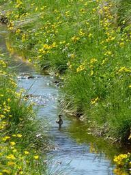 Keywords: bird paradise meadow countryside summer nature duck water river spring yellow flowers fields