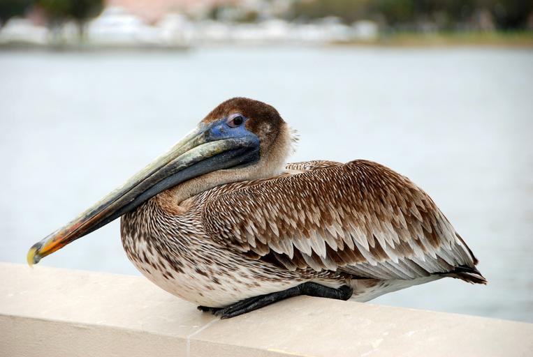 Keywords: bird pelican water bird birds nature water waterfowl animals pelicans rest relax calm sea suspicious ocean