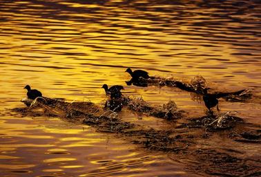 Keywords: bird river flight coot japan sunset spray autumn