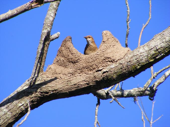 Keywords: bird rufous hornero nest mud sky blue brown ave blue sky nature screen saver stillness branches trunk argentina paradise peak work height