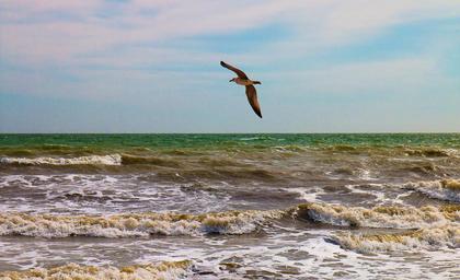 Keywords: bird seagull sea water summer sky bird against sky gulls flight beach wave