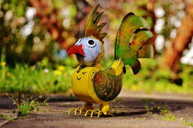 Keywords: bird sheet deco decoration outdoor artwork fig garden art color colorful painted metal