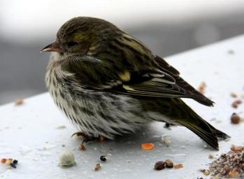 Keywords: bird siskins female window sill winter