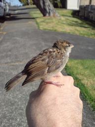 | Keywords: Bird Sitting On Outstretched Hand.jpg Juvenile House Sparrow Passer domesticus A little bird showing an example of how friendly read naive of possible danger New Zealand birdlife can be I picked him up after almost stepping on him you don't expect them to simply remain sitting on the footpath when you walk up Thought he might be hurt While he didn't like being cooped up in the hollow of my hands he simply climbed out and on top of my hand sitting there peacefully for almost a minute before flying away all spry and healthy Taken in a Manukau City suburb self-photographed 2008-01 Uploader Birds of New Zealand Photos taken by Ingolfson Passer domesticus juvenile 2008 in New Zealand Human hands holding birds |