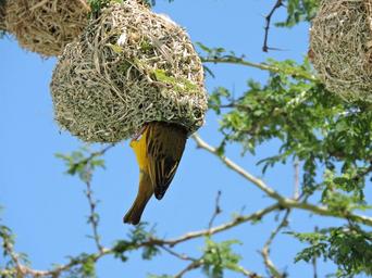 Keywords: bird sparrow nest tree thorns green branches nesting nature animal wildlife blue yellow home natural life fauna africa wild species national park kruger wings flying fly babies grass reeds straw plant herbivore outdoor habitat safari botswana flock zimbabwe conservation bush savannah