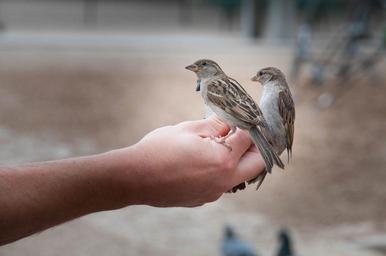 Keywords: bird sparrow sperling animal claws out birds hand