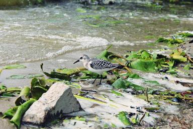 Keywords: plover bird water lake bank animal foraging wet nature animal world leaves stone