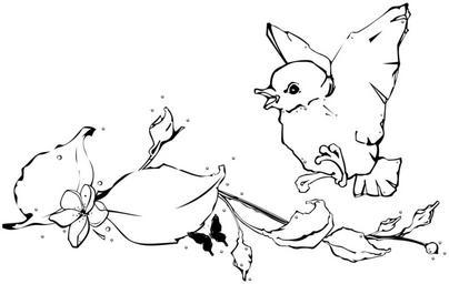Keywords: bird white baby flying landing flowers leaves tree branches nest ground plants grass blooms little small black and white