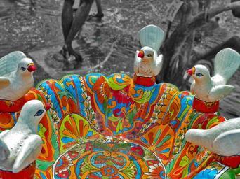 Keywords: birdbath garden outdoors colorful water decorative landscape