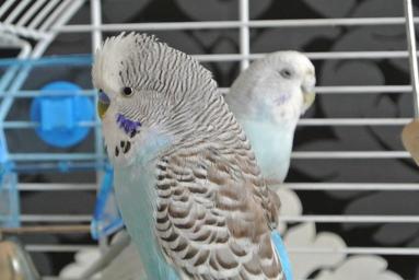 Keywords: birds budgerigars animals feather parakeets pets together blue animal world plumage bill plays toys sit pair