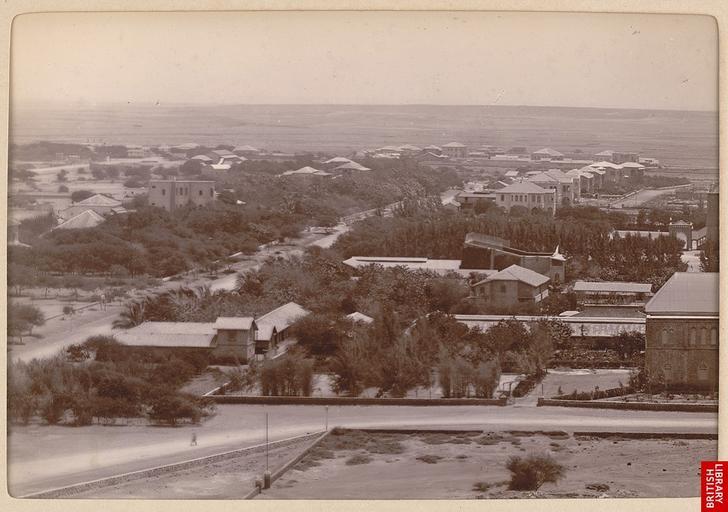 Keywords: Bird's eye view, Clifton Road -Karachi in 1890-.jpg Bird's eye view Clifton Road Karachi Photograph with a view looking along Clifton Road in Karachi taken by an unknown photographer c 1900 from an album of 46 prints titled 'Karachi Views' Views 21-32 from this album join together to form a 360 degree panorama of the city from the tower of Trinity Church Part of the Frere Hall can be seen at the extreme right Clifton is now one of the most exclusive residential areas of the city Karachi one of the world's largest metropolises was once the capital of Pakistan It is now the capital of the Sindh province in the lower Indus valley and is the financial and commercial centre of Pakistan This huge city was however developed only in the mid-19th century after the British conquest of Sindh Karachi is built around a bay which is a natural harbour protected from storms by a group of small islands Its history prior to the 18th century is sketchy but it is believed to be the ancient port of Krokala on the Arabian Sea visited by Alexander's admirals in 326 BCE The small fishing village was known as Kolachi-jo-Goth in the 18th century and then became a trading post under the Kalhoras and the Talpur rulers of Sindh but the port remained small With the British development of its harbour it grew into the large city of Karachi and an important centre of trade particularly of cotton and wheat http //www collectbritain co uk/ The British Library photo link http //www collectbritain co uk/personalisation/object cfm uid 019PHO000000425U00029000 largeimage 1 largeimage here 1900 Author PD-old PD-UK-unknown Karachi 1890s Pakistan in the 1890s |