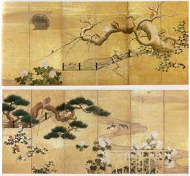 | Keywords: 'Birds and Flowers, pair of six-panel screens by Kano Koi, 17th centory Japan, Honolulu Academy of Arts.jpg Birds and Flowers pair of six-panel screens by Kanō Kōi 17th centory Japan ink color and gold on paper Honolulu Museum of Art accessions 4149 4150 Honolulu Academy of Arts 17th centory Kanō Kōi PD-Art-100 Kanō Kōi Kano school paintings Landscape paintings in the Honolulu Museum of Art Bird-and-flower paintings of Japan Japanese screens in the Honolulu Museum of Art Byōbu | ||||