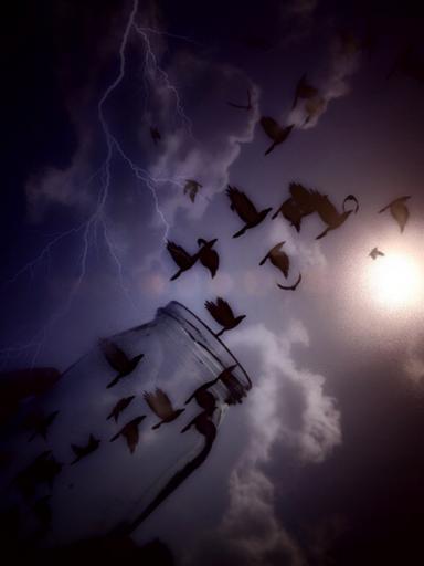 Keywords: birds glass freedom leave blank fly sky clouds black thunderstorm atmosphere shadow light mood mystical
