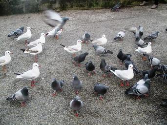 Keywords: birds gulls pigeons flock of birds white grey