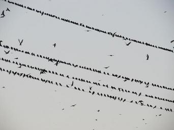 Keywords: birds hitchcock flock crows wires swarm flying preponderance