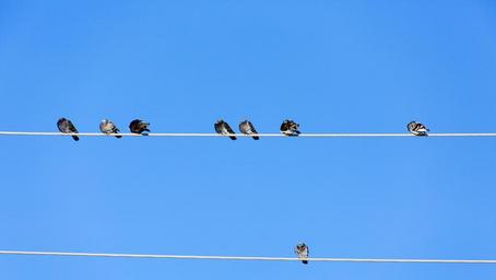 Keywords: birds pole sky nature animal wire wildlife electric blue outdoors natural cold sunlight line wild community group feather