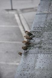 Keywords: birds roof watching sparrow grey city town animal outdoors street