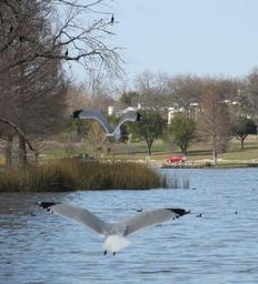 Keywords: birds seagulls flying lake shore waterfowl nature landscape scene fly