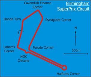 Keywords: Birmingham SuperPrix.svg Diagram of the circuit used for the Birmingham Superprix meetings 1986-1990 Own 2006-11-20 John Chapman Racing circuits maps of England Events in Birmingham