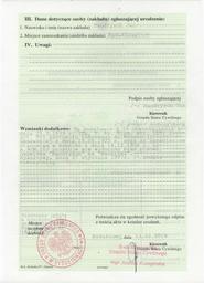 | Keywords: Birth certificate with changed name.jpg en Second page of birth certificate with lawlessly changed name by polish governament in 1937 year pl Druga strona odpisu zupełnego aktu urodzenia ze spolszczonym przez polski aparat państwowy nazwiskiem w 1937 roku delivered by polish civil registry scane made by me 2014-02-15 PD-Polishsymbol Documents Cc-zero |