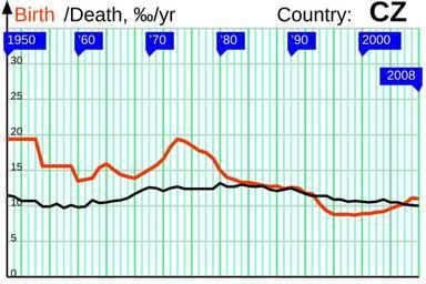 ΠΈΠΈ 1950 2008 own Incnis Mrsi 2009-07-14 public domain File RNI 1950 CZ svg Disclaimer The author of this graph gives no warranty and accepts no responsibility for its factual accuracy This graph is nothing but a visualization of data from http //demoscope ru/weekly/ias/ias05 php tim 0 cou 36 terr 1 ind 26 Submit OK http //demoscope ru/weekly/ias/ias05 php tim 0 cou 36 terr 1 ind 1 Submit OK which may be incomplete or error-prone If you find an error please correct the data in a <path d ¦ /> tag adding some comments about your reliable source and upload the file over Demographics of the Czech Republic Birth and death rates |