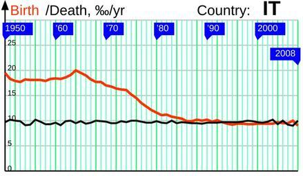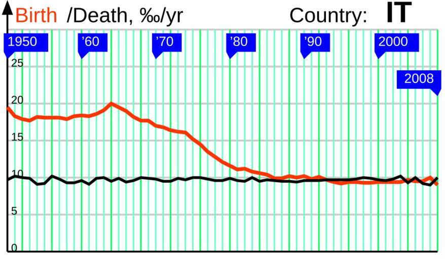 | Keywords: BirthDeath 1950 IT.svg en The birth and death rates in Italy 1950 2008 ru Π ΠΎΠΆΠ΄Π°Π΅ΠΌΠΎΡΡΡ ΠΈ ΡΠΌΠ΅Ρ ΡΠ½ΠΎΡΡΡ Π² ΠΡΠ°Π»ΠΈΠΈ 1950 2008 own Incnis Mrsi 2009-07-14 public domain File RNI 1950 IT svg Disclaimer The author of this graph gives no warranty and accepts no responsibility for its factual accuracy This graph is nothing but a visualization of data from http //demoscope ru/weekly/ias/ias05 php tim 0 cou 14 terr 1 ind 26 Submit OK http //demoscope ru/weekly/ias/ias05 php tim 0 cou 14 terr 1 ind 1 Submit OK which may be incomplete or error-prone If you find an error please correct the data in a <path d ¦ /> tag adding some comments about your reliable source and upload the file over Temporal population graphs of Italy Birth and death rates |