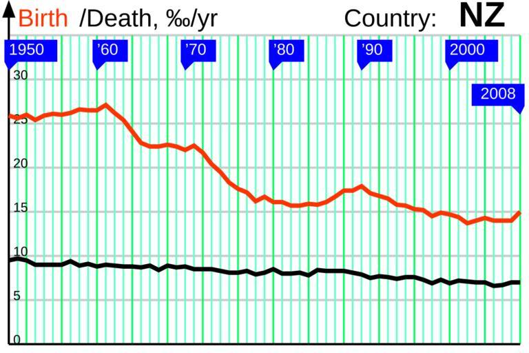 | Keywords: BirthDeath 1950 NZ.svg en New Zealand's birth and death rates 1950 2008 ru Π ΠΎΠΆΠ΄Π°Π΅ΠΌΠΎΡΡΡ ΠΈ ΡΠΌΠ΅Ρ ΡΠ½ΠΎΡΡΡ Π² Π ΠΎΠ²ΠΎΠΉ ΠΠ΅Π»Π°Π½Π΄ΠΈΠΈ 1950 2008 own Incnis Mrsi 2009-07-13 public domain File RNI 1950 NZ svg Disclaimer The author of this graph gives no warranty and accepts no responsibility for its factual accuracy This graph is nothing but a visualization of data from http //demoscope ru/weekly/ias/ias05 php tim 0 cou 22 terr 1 ind 26 Submit OK http //demoscope ru/weekly/ias/ias05 php tim 0 cou 22 terr 1 ind 1 Submit OK which may be incomplete or error-prone If you find an error please correct the data in a <path d ¦ /> tag adding some comments about your reliable source and upload the file over Temporal population graphs of New Zealand Birth and death rates |
