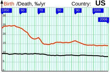 | Keywords: BirthDeath 1950 US.svg en The birth and death rates in the United States of America 1950 2008 ru Рождаемость и сме тность в США 1950 2008 own Incnis Mrsi 2009-07-13 public domain File RNI 1950 US svg Disclaimer The author of this graph gives no warranty and accepts no responsibility for its factual accuracy This graph is nothing but a visualization of data from http //demoscope ru/weekly/ias/ias05 php tim 0 cou 31 terr 1 ind 26 Submit OK http //demoscope ru/weekly/ias/ias05 php tim 0 cou 31 terr 1 ind 1 Submit OK which may be incomplete or error-prone If you find an error please correct the data in a <path d /> tag adding some comments about your reliable source and upload the file over Demographic charts of the United States Birth and death rates |