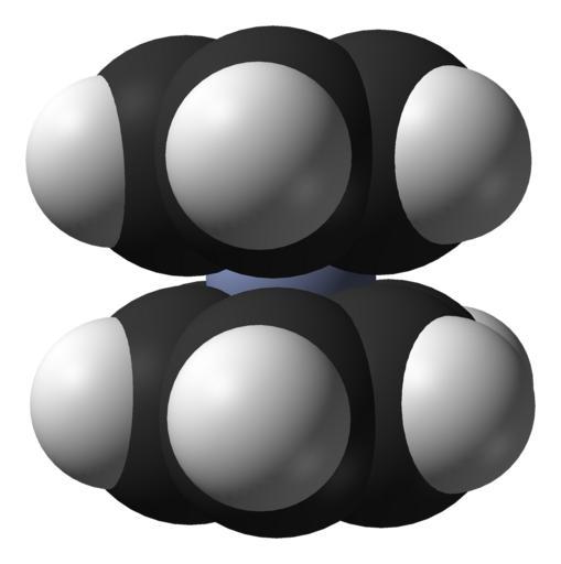 | Keywords: Bis(benzene)chromium-from-xtal-2006-3D-SF.png Space-filling model of the bis benzene chromium molecule C<sub>6</sub>H<sub>6</sub> <sub>2</sub>Cr i e C<sub>12</sub>H<sub>12</sub>Cr from the crystal structure Colour code Carbon C black Hydrogen H white Chromium Cr grey-blue Crystal structure by X-ray diffraction from http //dx doi org/10 1021/jp057516v J Phys Chem A 2006 110 6545 “6551 Model constructed in http //www crystalmaker com/ CrystalMaker 8 1 Image generated in http //accelrys com/products/discovery-studio/visualization/discovery-studio-visualizer html Accelrys DS Visualizer Own 2009-07-06 Ben Mills Benjah-bmm27 Images by Ben Mills Space-filling models Crystal structures of bis benzene chromium |