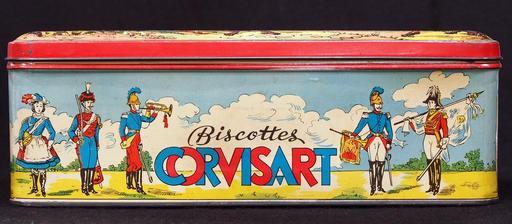 Keywords: biscottes corvisart box tin package old retro historic container metal