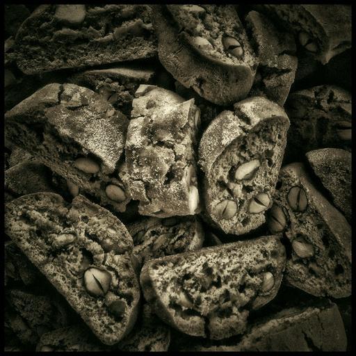 Keywords: biscotti pastries food almonds nuts cookies bake crispy eat nutrition feed black and white light